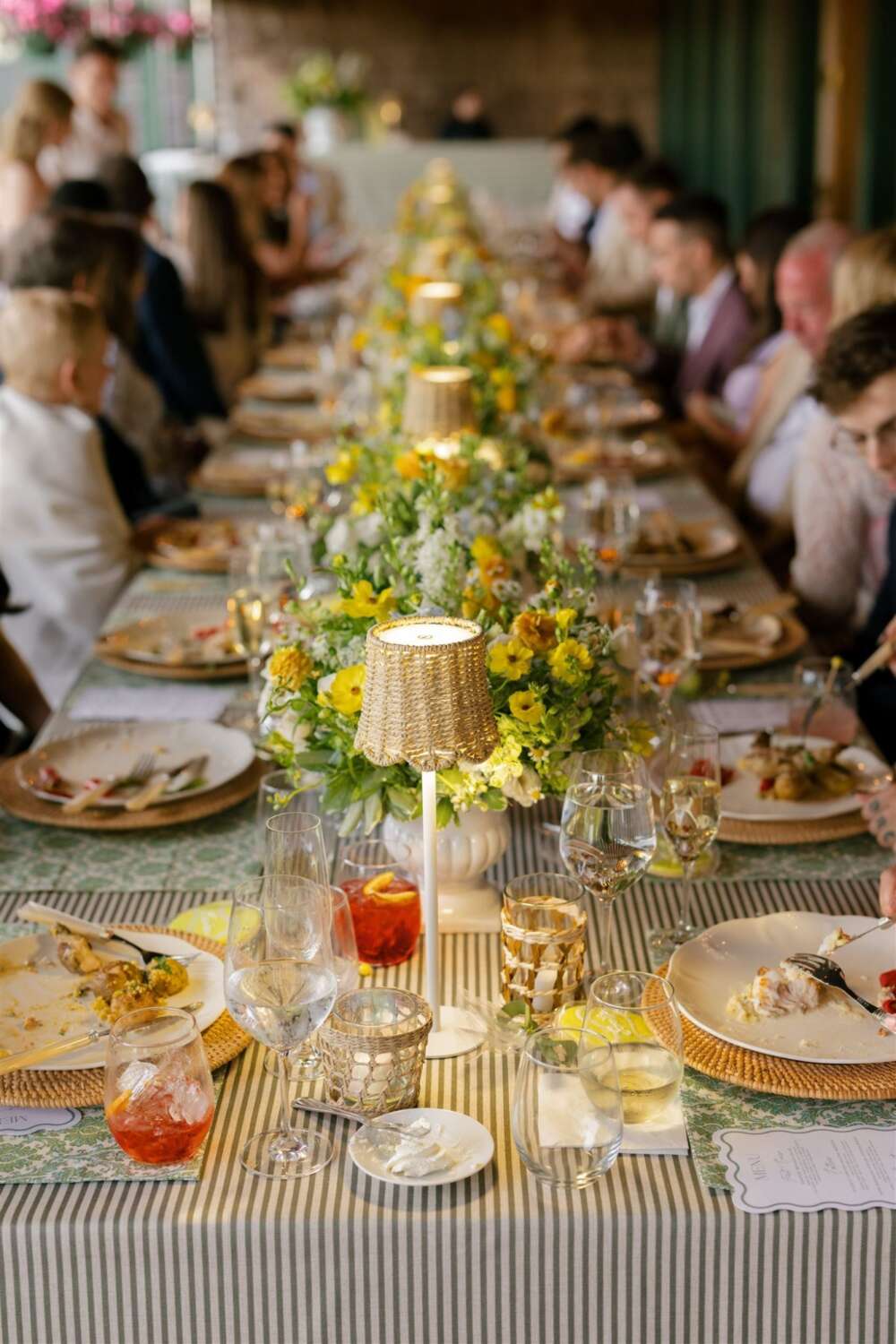 Thoughtful design choices can instantly elevate the dining experience, turning a rehearsal dinner or welcome party into a visually memorable part of the wedding weekend. The tablescape is one of the best places to infuse personality, with thoughtfully chosen linens, textured chargers, and distinctive glassware to uplevel the aesthetic. At the Tennis Hall of Fame, we love to see florals in a palette of greens, whites, and soft yellows to complement the grass courts, and candlelight to add warmth as the evening progresses.