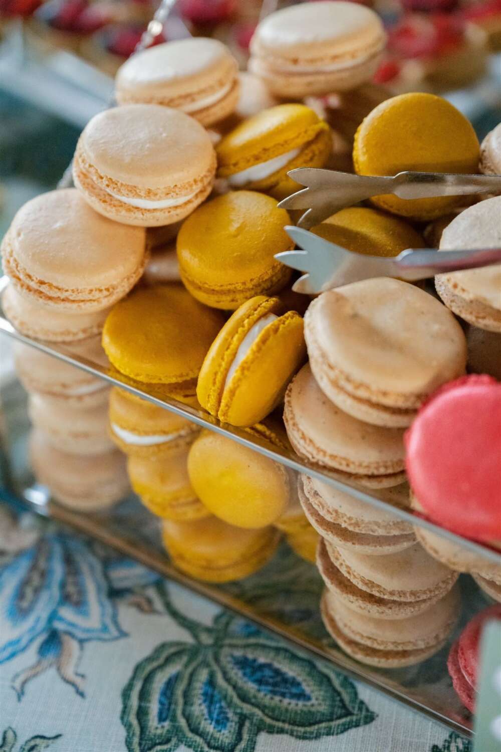 A dessert display of petite sweets such as French macarons, mini crème brûlée, and delicate éclairs offers variety and allows guests to continue mingling throughout the grass courts rather than returning to their seats – a functional choice we encourage at one-of-a-kind venues like the Tennis Hall of Fame. Our couples have also delighted guests with custom tennis ball shaped cookies – small, playful nods to the theme without overwhelming it.