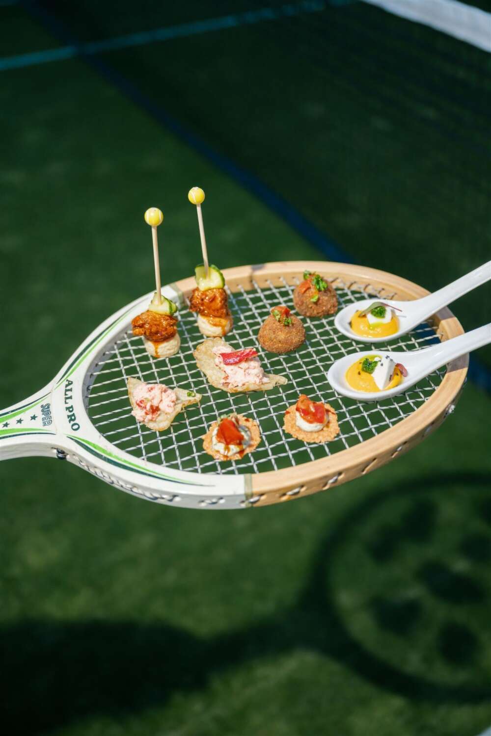 Our culinary team is always thinking creatively about presentation, and we love to see the vendor team play together with custom details like stir sticks engraved with your monogram, cocktails served court-side on vintage tennis rackets, and tennis-inspired signage. You might even suggest a thematic dress code, like all-white, to celebrate the tradition of the sport. These unique, bespoke details spotlight the thought and care that you as a couple have put into your wedding weekend, and set the tone for the celebrations ahead – not to mention becoming photo-worthy moments!